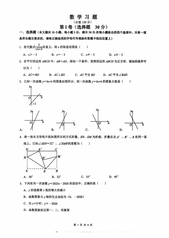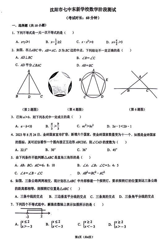 辽宁沈阳市七中东新学校2025-2026学年八年级下学期数学阶段测试