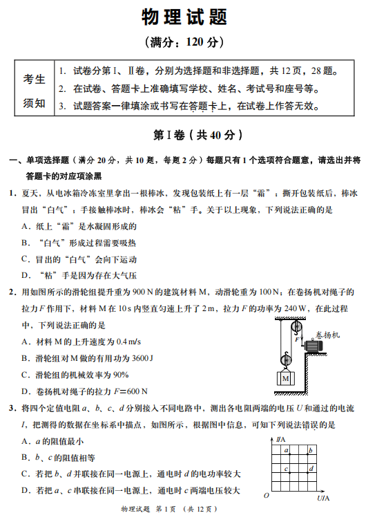 2024年山东省青岛市即墨区自主招生物理试题