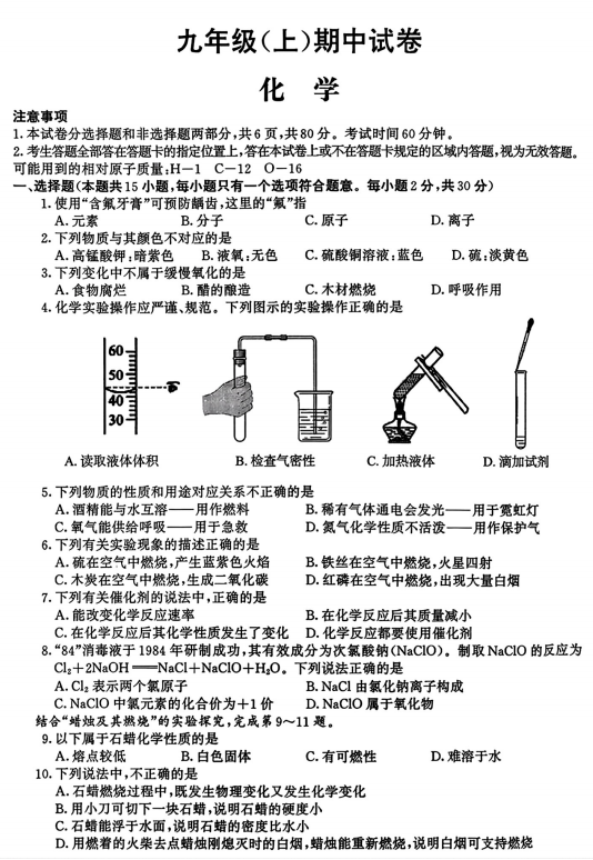 江苏省南京市鼓楼区2025-2026学年九年级上学期期中考试化学试题