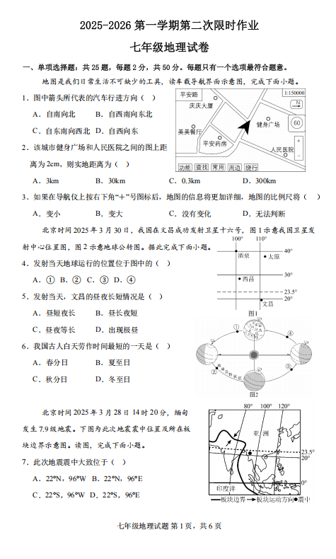 甘肃省和政县第五中学2025-2026学年七年级上学期12月月考地理试题