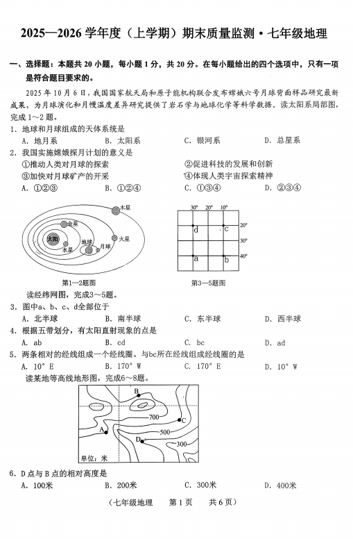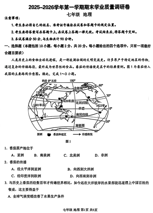 广东省广州市白云区2025-2026学年七年级上学期期末地理试题