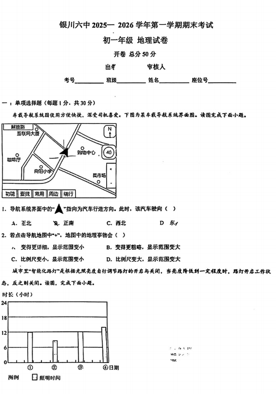 宁夏银川市第六中学2025-2026学年七年级上学期期末地理试题