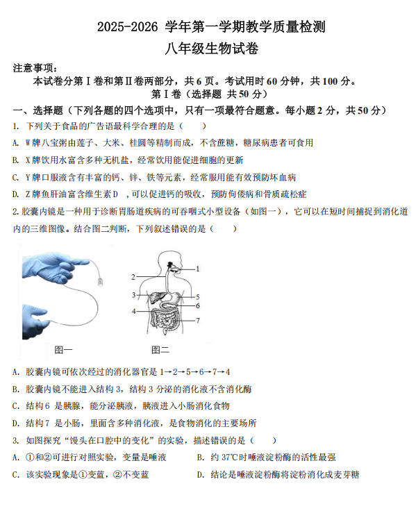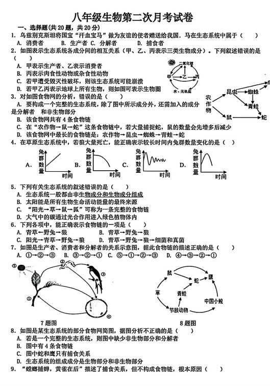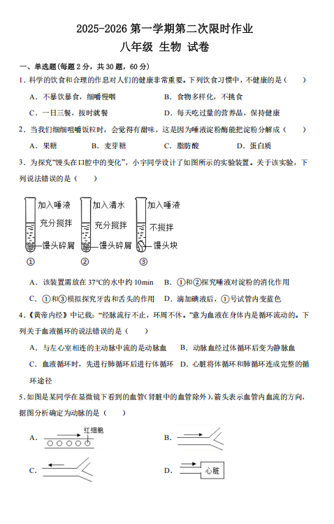 河南省濮阳市范县第一初级中学2025-2026学年八年级上学期第二次月考生物试题