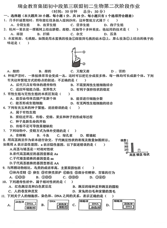 江西省赣州市瑞金教育集团初中段第三联盟2025-2026学年八年级上学期第二次阶段作业生物试题