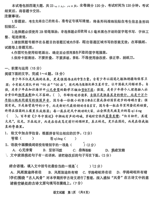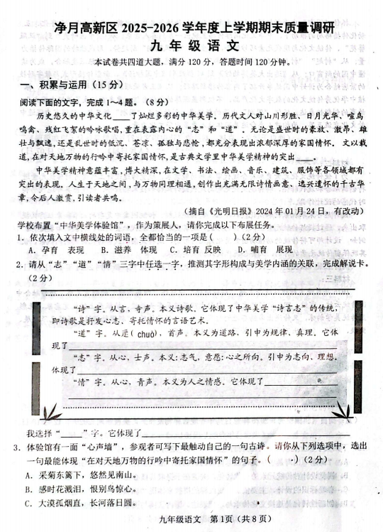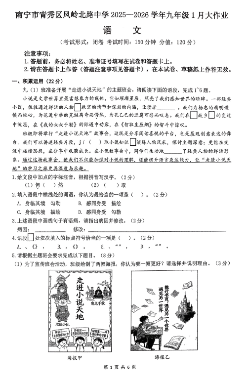 江苏省南京江北新区浦口外国语学校高新分校2025-2026学年九年级上学期12月月考历史试卷