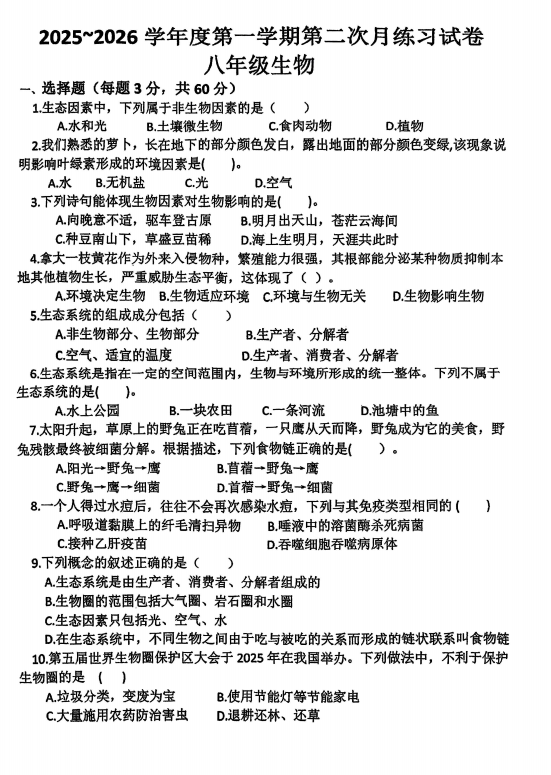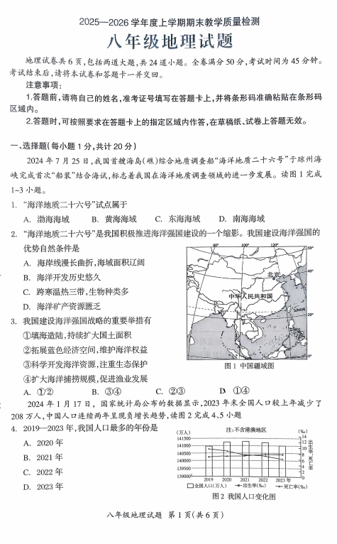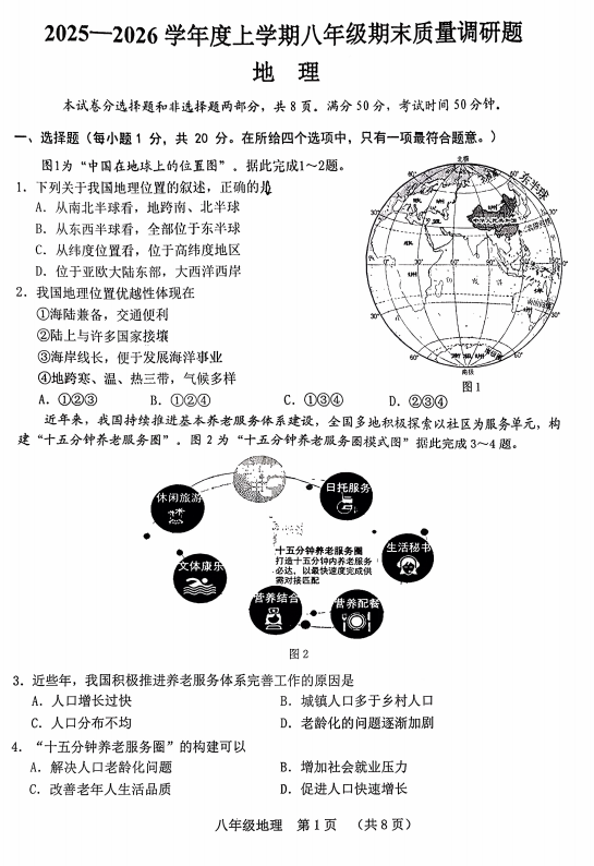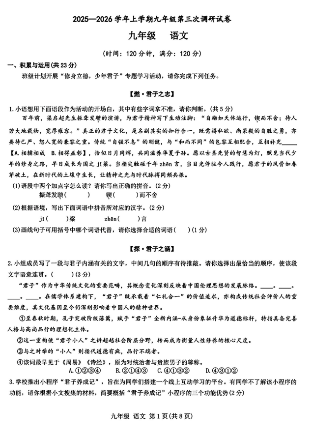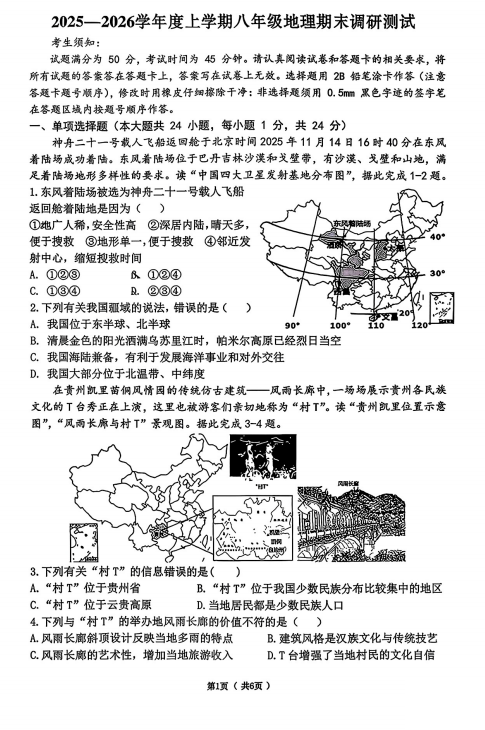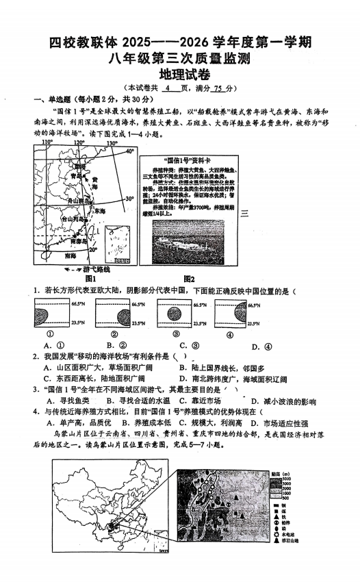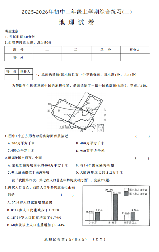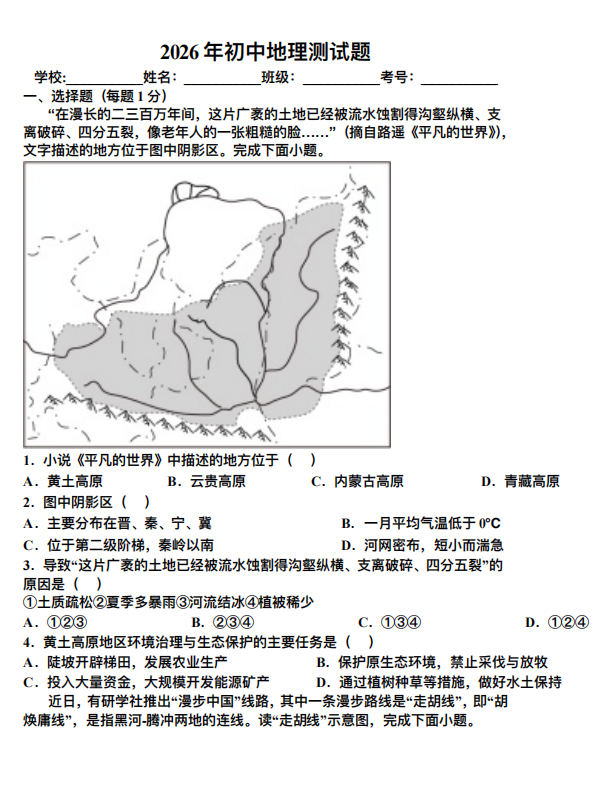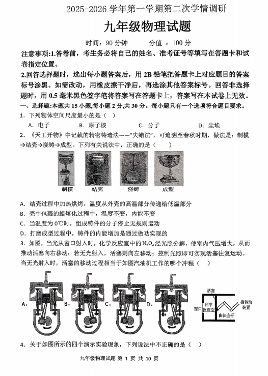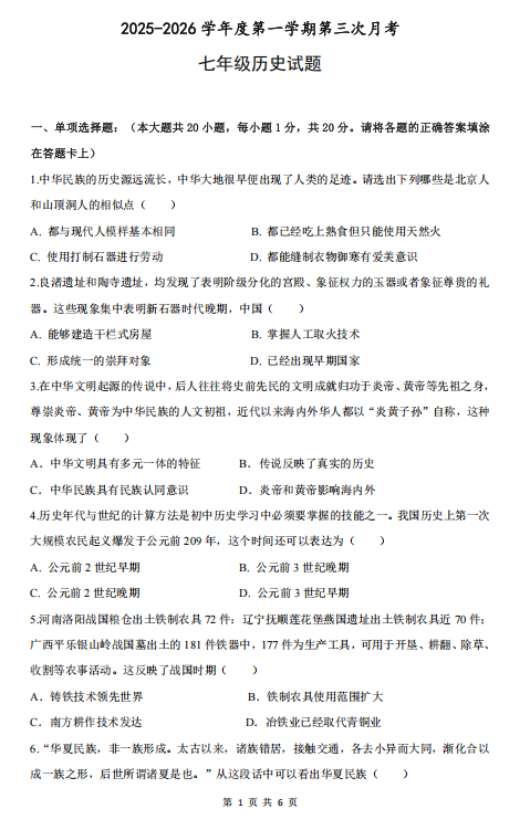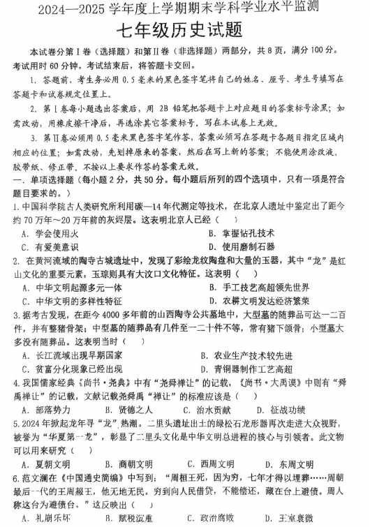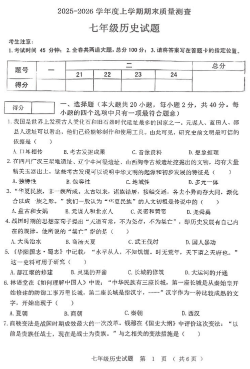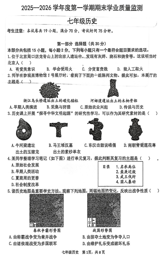 山东省德州市平原县龙门中学、平原二中、平原汇文中学等2025-2026学年九年级上学期1月月考历史试题