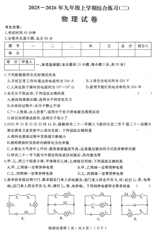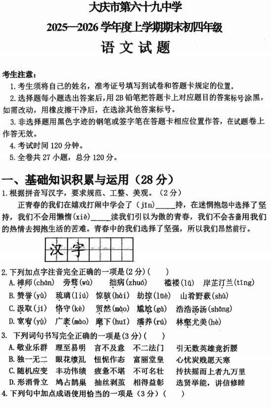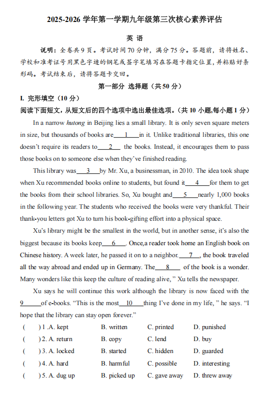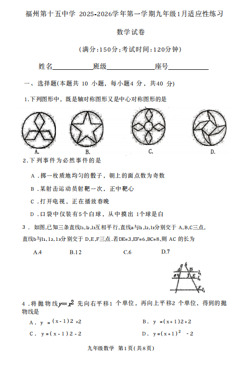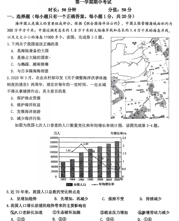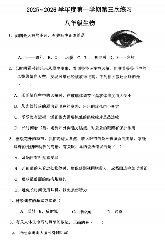 吉林省吉林市第五中学2025-2026学年九年级上学期期末考试历史试题
