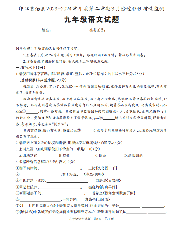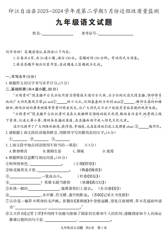 云南省昆明市润城学校2025-2026学年上学期12月月考九年级历史试题卷