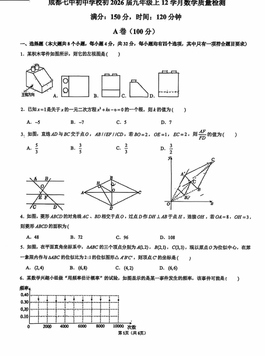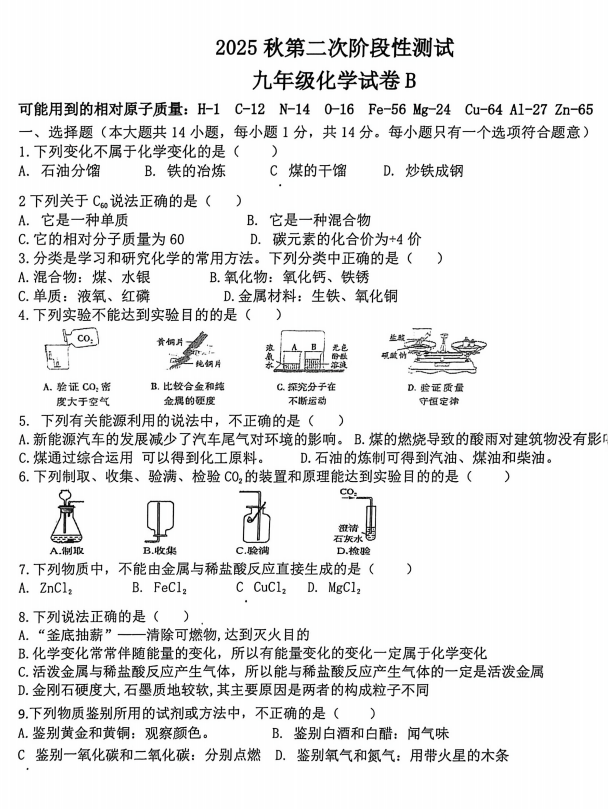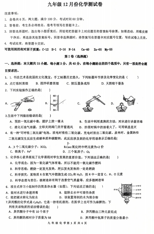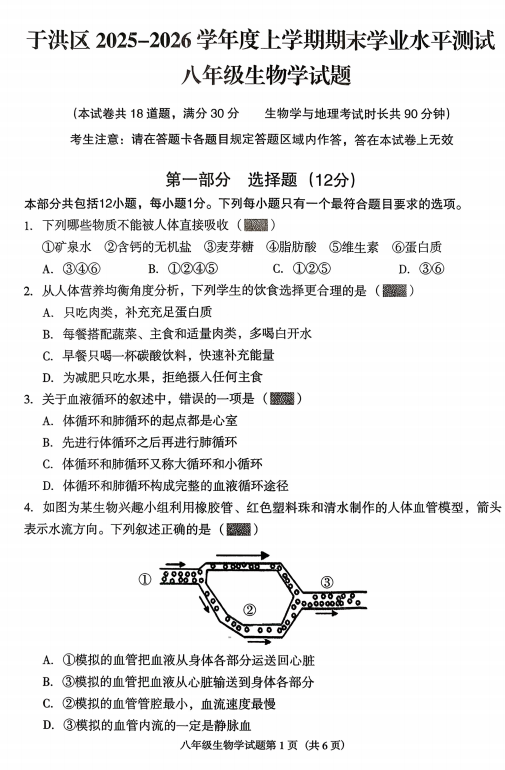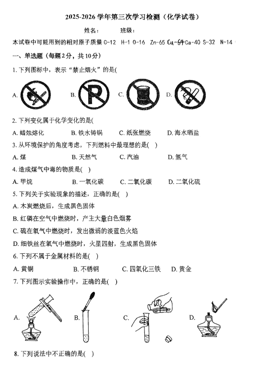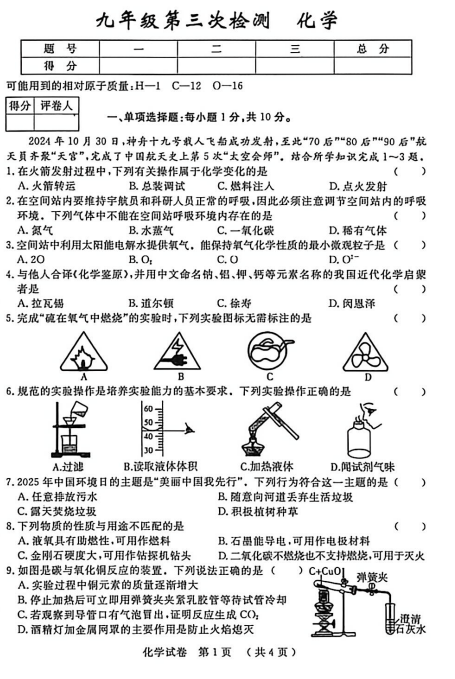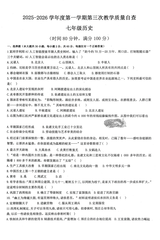 天津市西青区张家窝中学2025-2026学年九年级上学期12月月考历史试题
