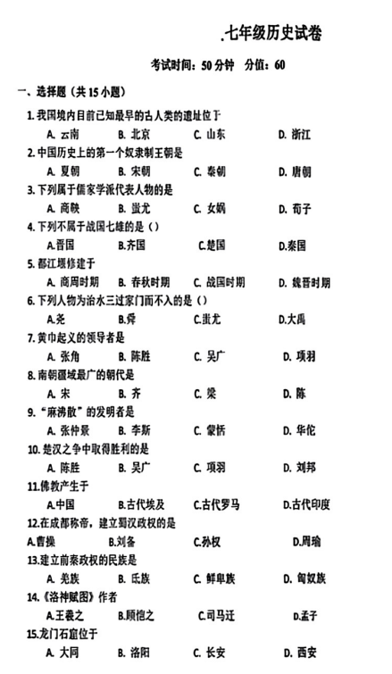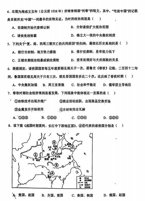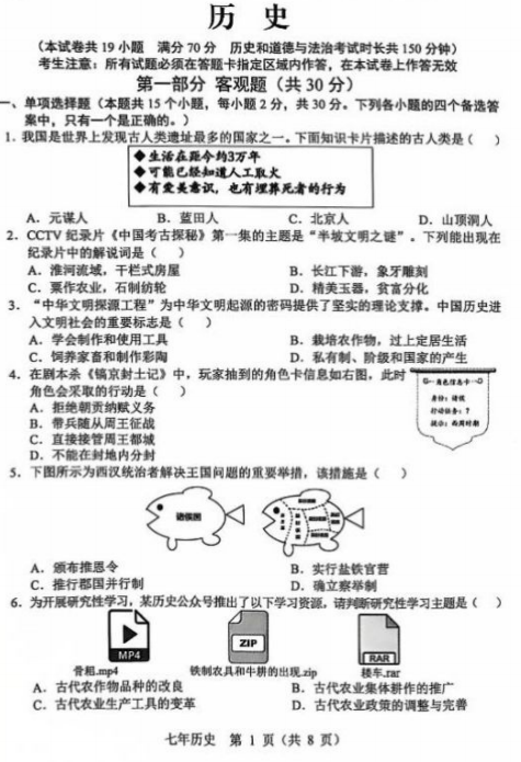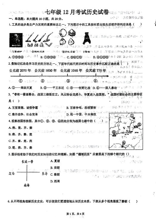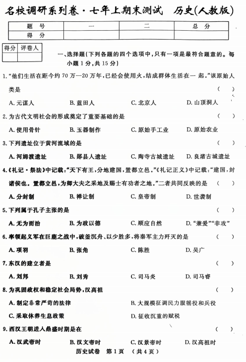 山东省聊城市莘县朝城镇中心初级中学2025-2026学年九年级上学期12月测试历史试题