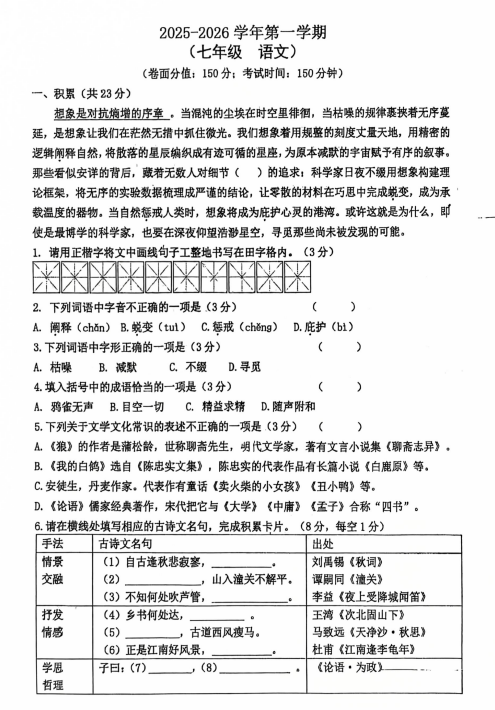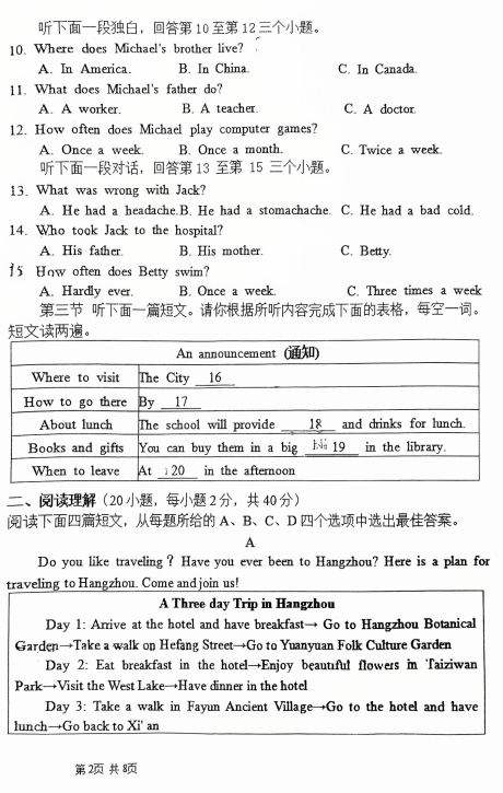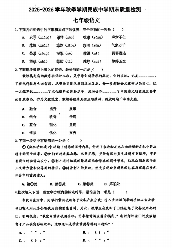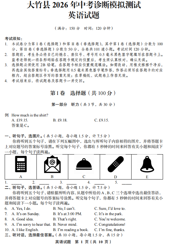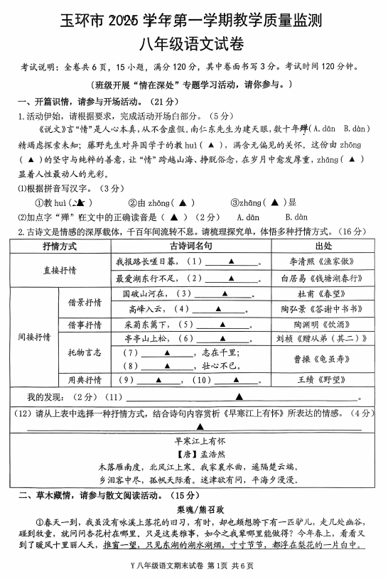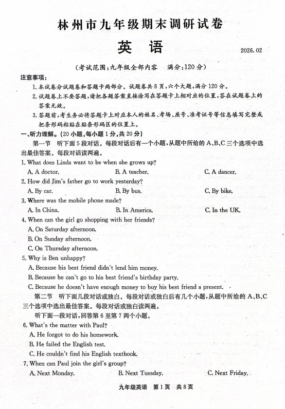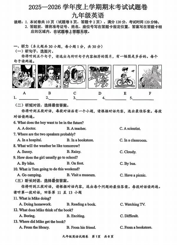 广西梧州市2025-2026学年度上学期期末考试试题卷九年级英语