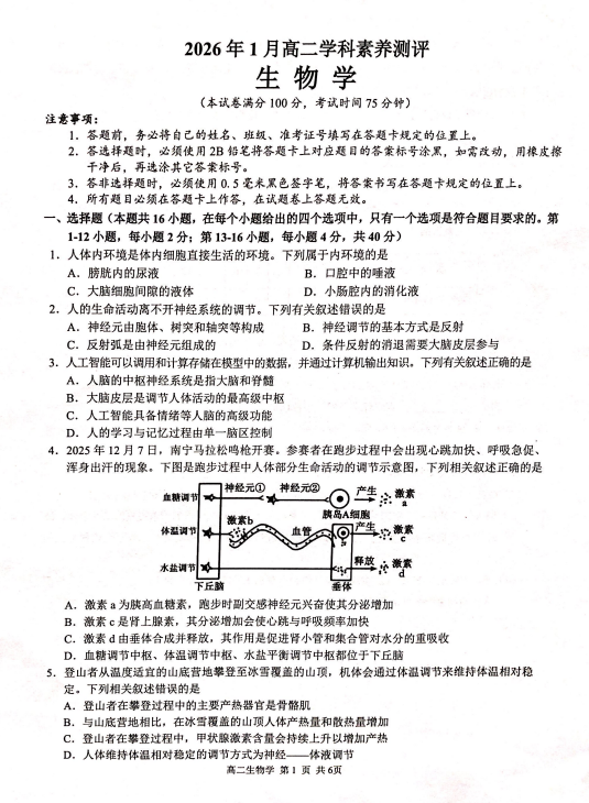2025-2026学年高一上学期1月期末生物试题1