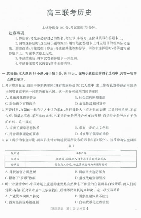 贵州省部分学校2024-2025学年高三上学期12月月考历史试卷