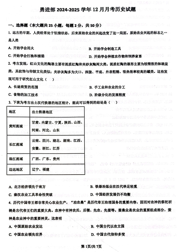 黑龙江省大庆市林甸县第一中学2025-2026学年高二上学期学科竞赛历史试题