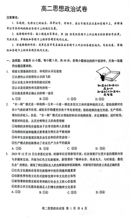 2025-2026学年高一上学期2月期末考试政治试题
