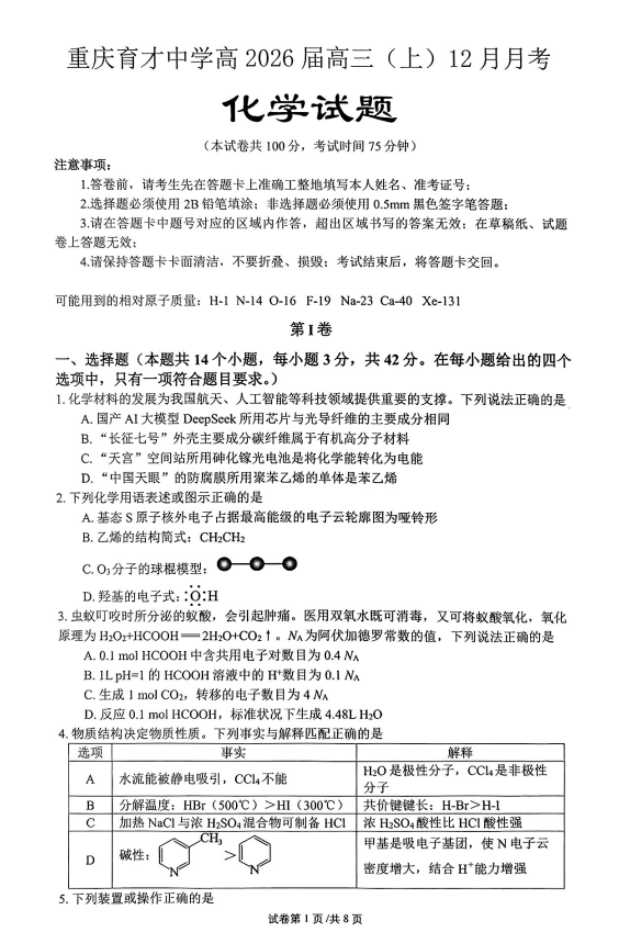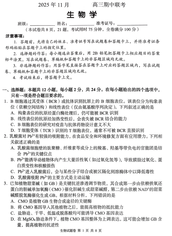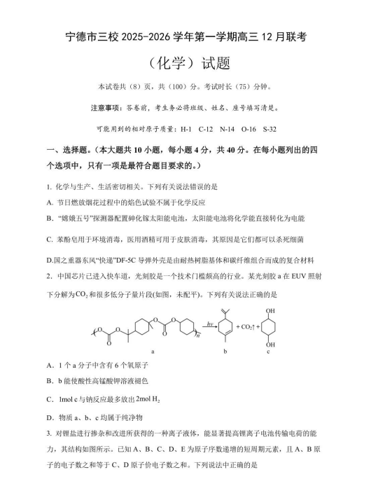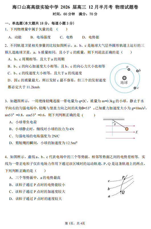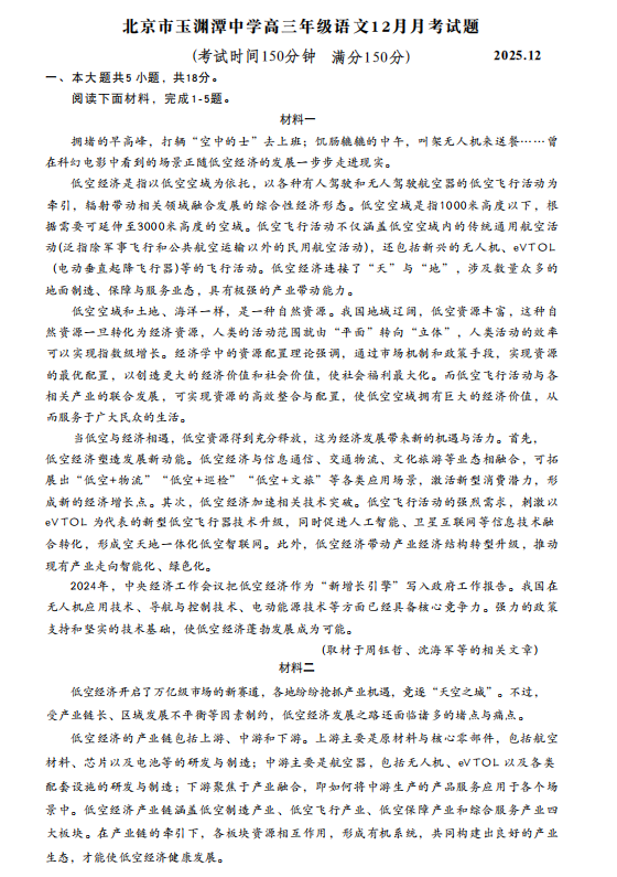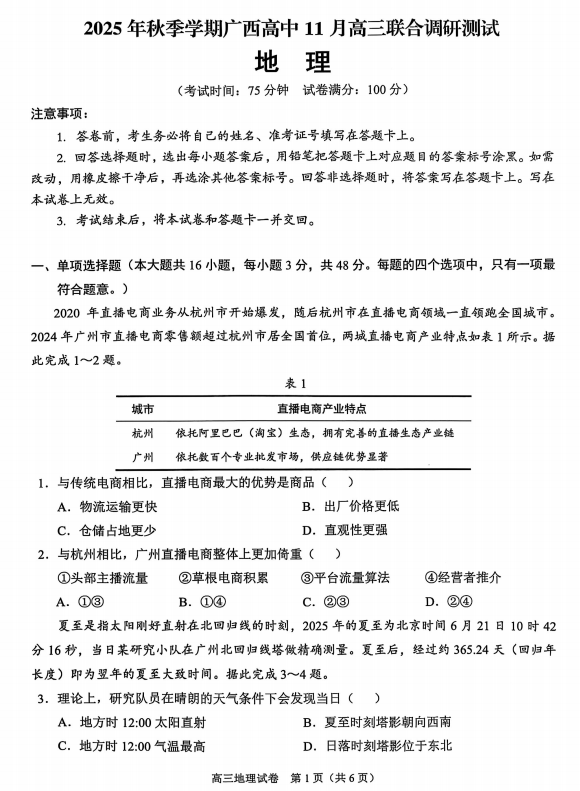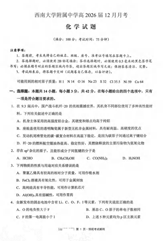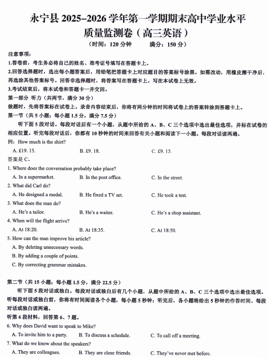 广西南宁市银海三雅学校2025-2026学年高三上学期1月月考英语试卷