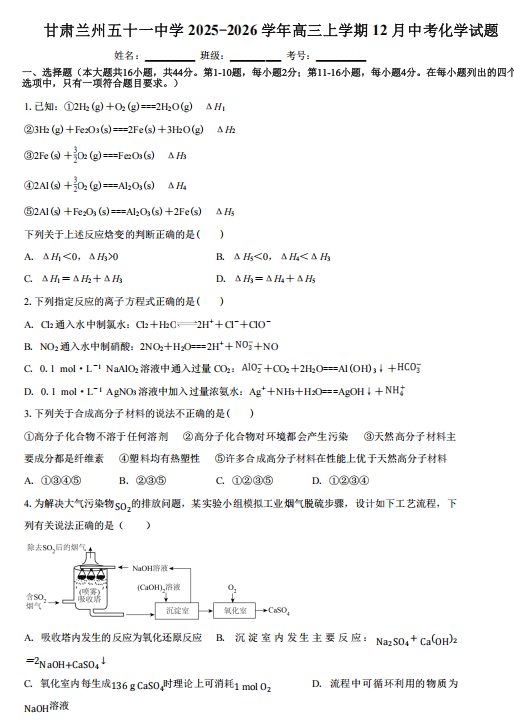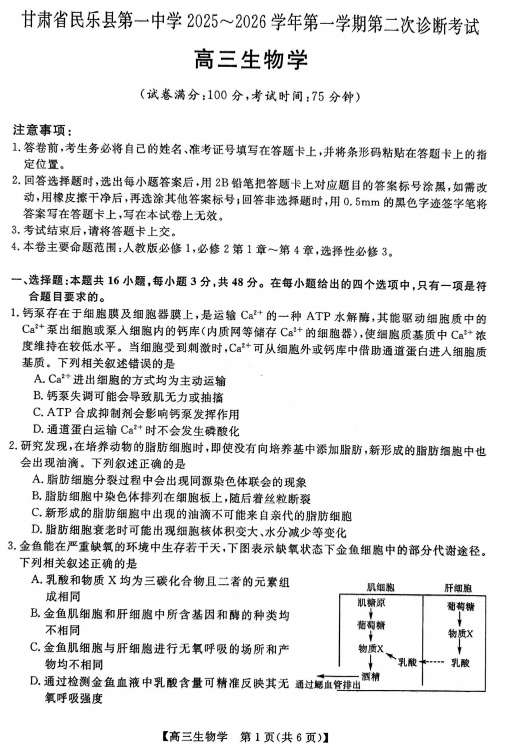 甘肃省兰州市第五十一中学2025-2026学年高三上学期第一次月考英语试题
