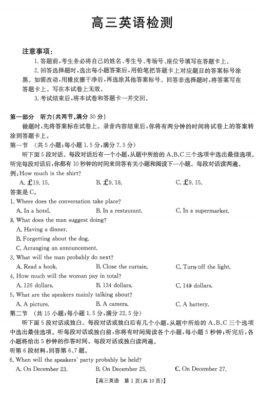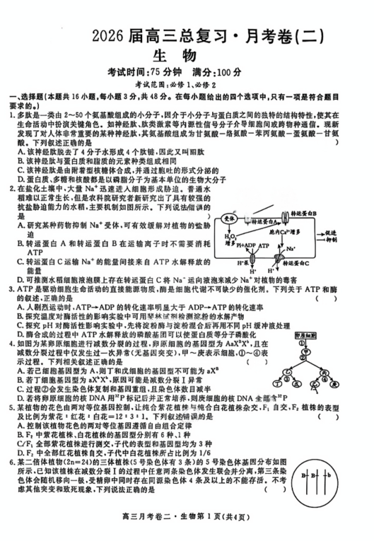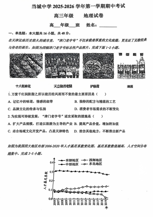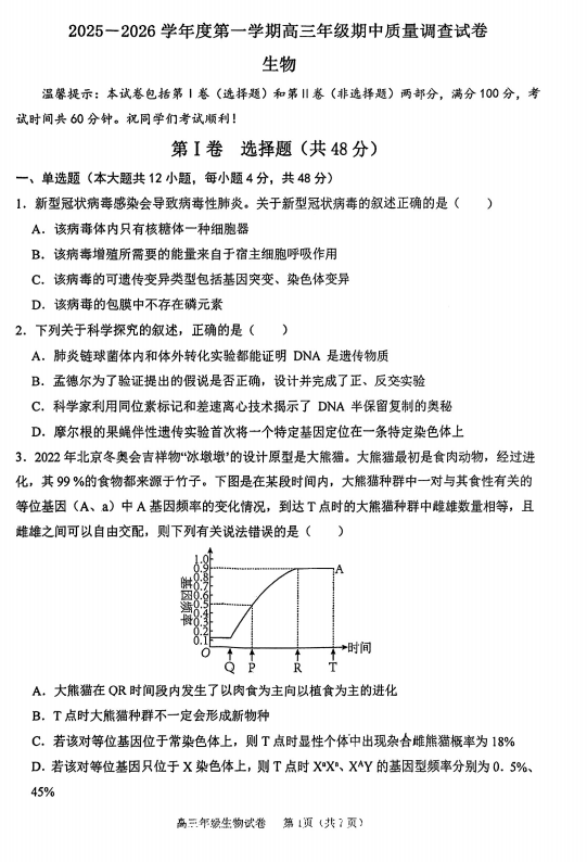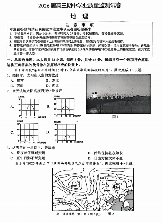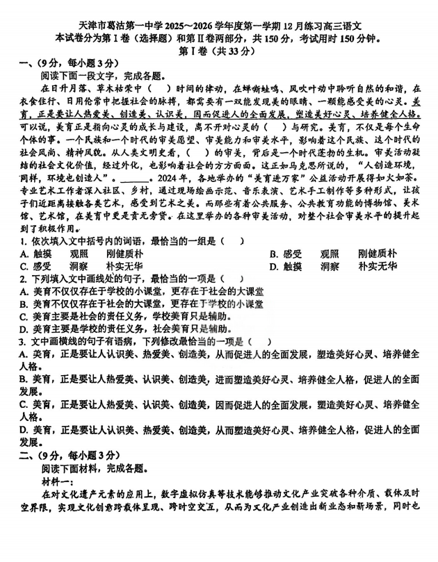 天津市河东区天津市第五十四中学2025-2026学年高三上学期1月月考英语试题