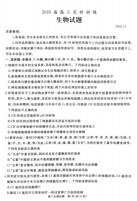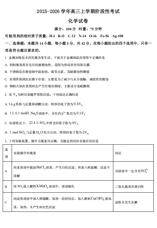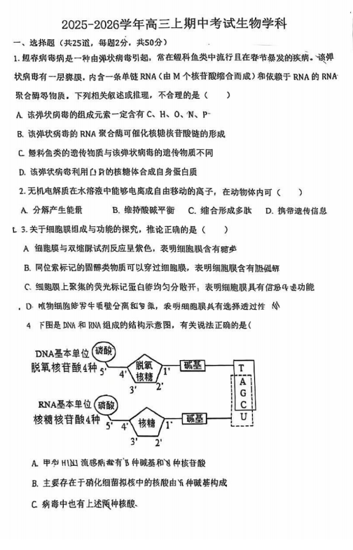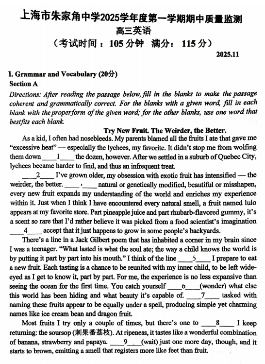 天津市河西海河中学2025-2026学年高三上学期第二次月考英语试卷