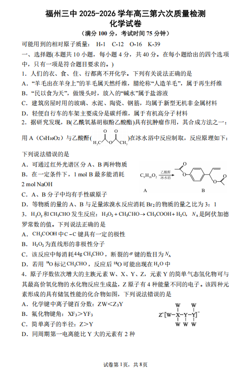2026届陕西宝鸡市千阳县中学春季高考三模英语试题
