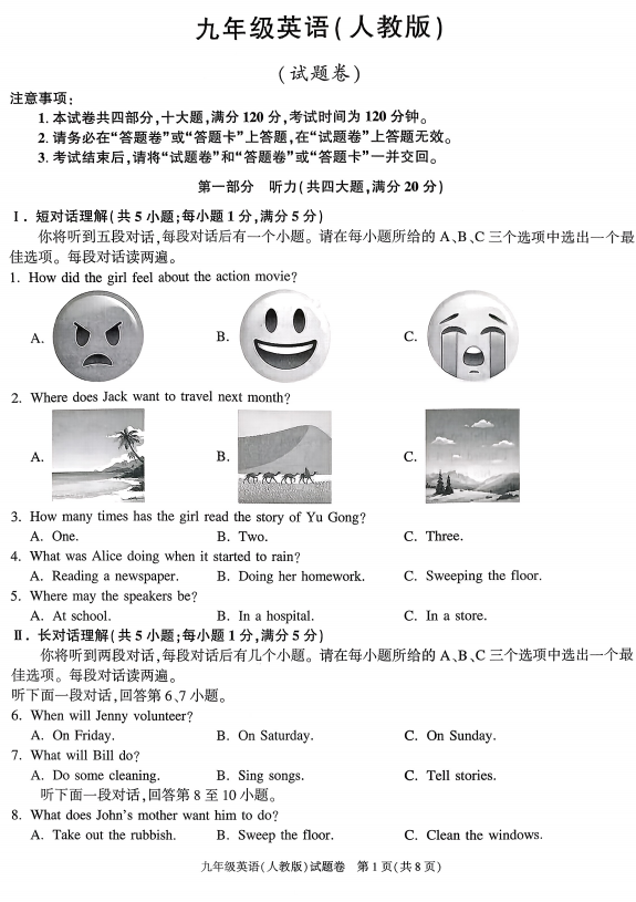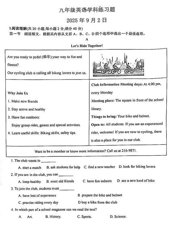 安徽潜山市三中2025-2026学年九年级上学期开学考试英语试卷