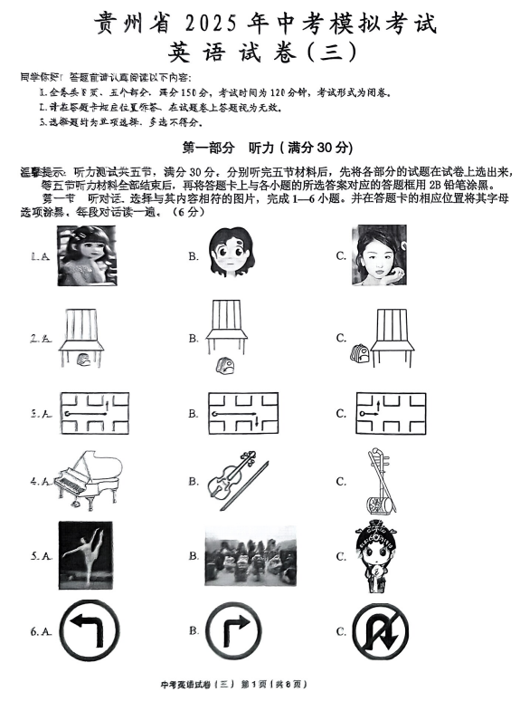 贵州省黔东南州剑河县第四中学2025年中考模拟考试英语试卷(三)