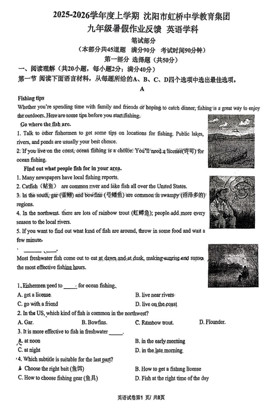 辽宁省沈阳市虹桥中学教育集团2025-2026学年上学期九年级暑假作业反馈英语试题