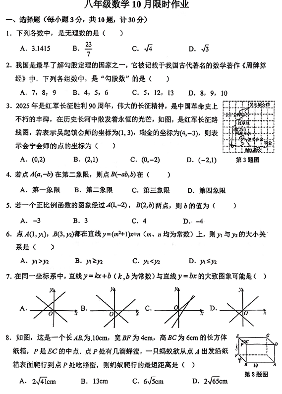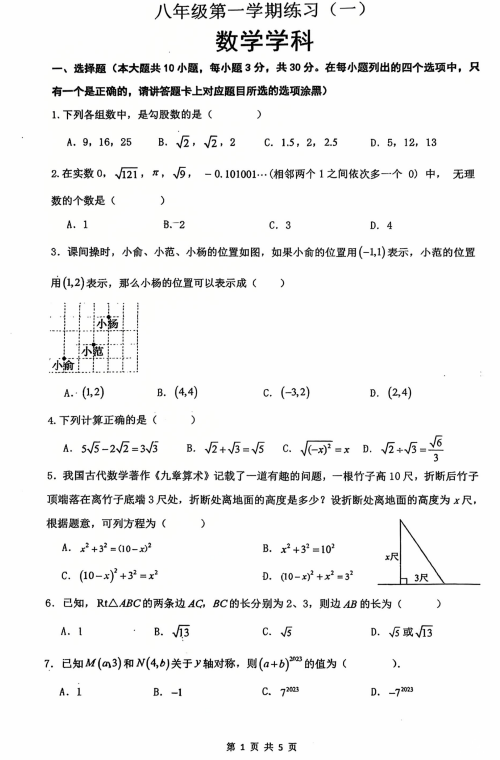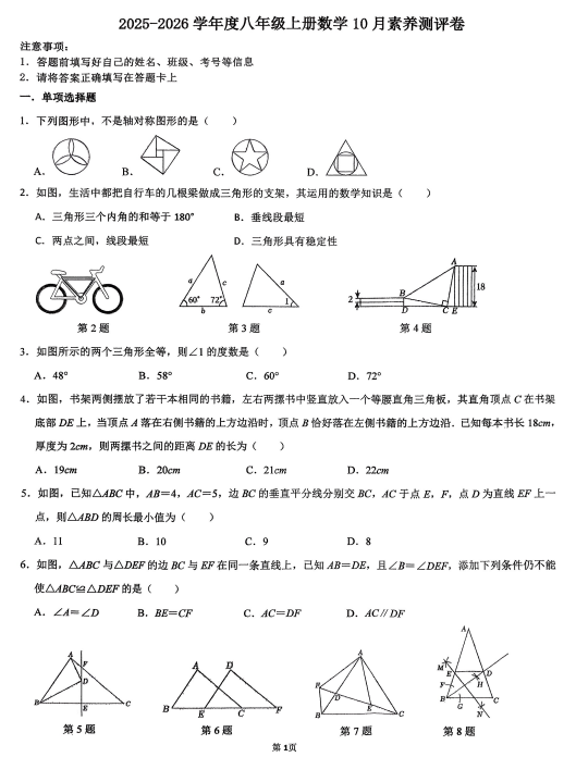 广东省佛山市第三中学附属三龙湾中学2025-2026学年八年级上学期10月月考数学试题