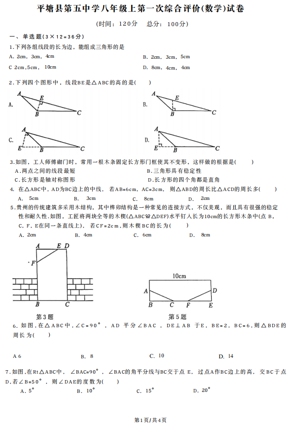 贵州省黔南布依族苗族自治州平塘县第五中学2025-2026学年八年级上学期开学数学试题