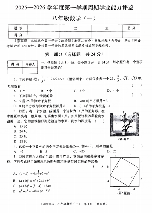 甘肃省兰州市联片办学2025-2026学年上学期期中考试八年级数学试卷