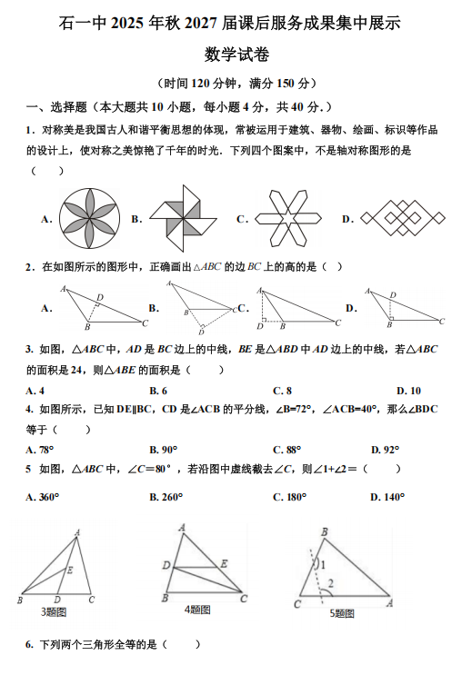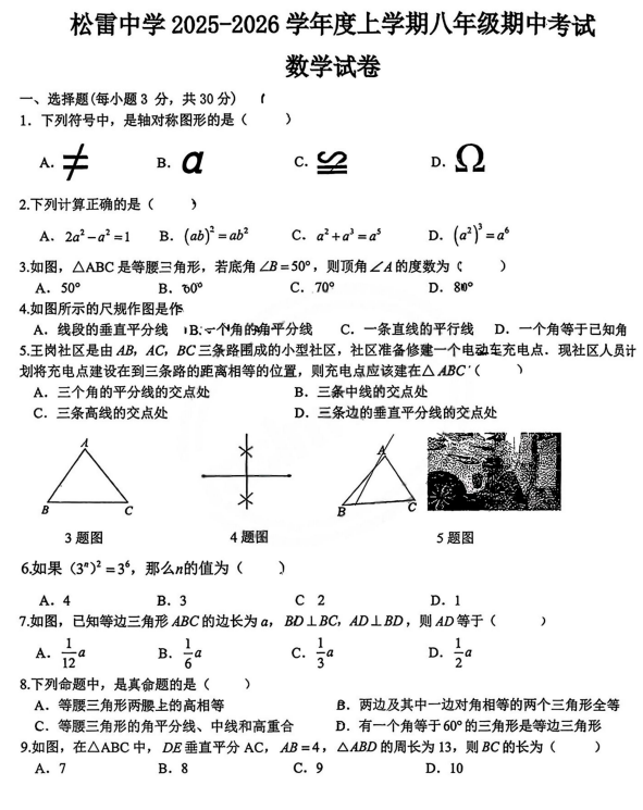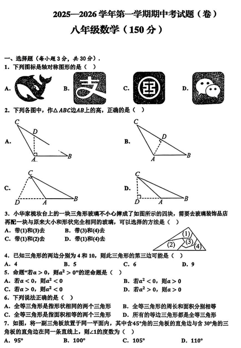 黑龙江省哈尔滨市松雷中学2025-2026学年八年级上学期期中考试数学试题