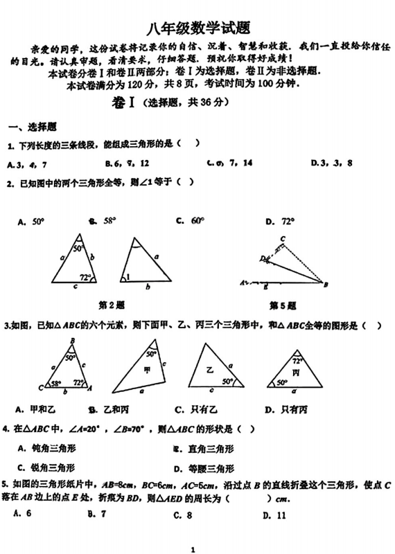 甘肃省陇南市2025-2026学年八年级上学期期中考试数学试卷