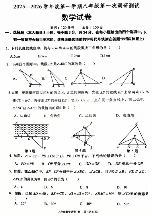 江苏省宿迁市沭阳县七雄中学2025-2026学年上学期八年级第一次调研测试数学试卷