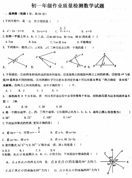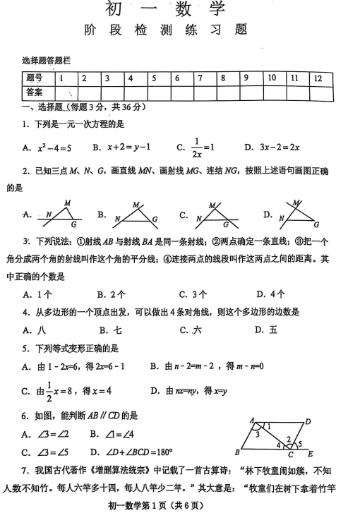山东省泰安市岱岳区2024-2025学年鲁教版六年级数学上学期期中测试题