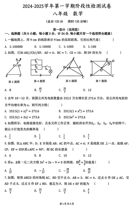 辽宁省铁岭市清河区杨木中学2024-2025学年上学期八年级月考数学试卷