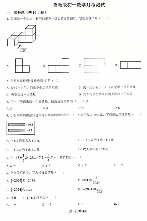 山东省济宁市任城区安居第一中学2025-2026学年六年级上学期十月月考数学试卷