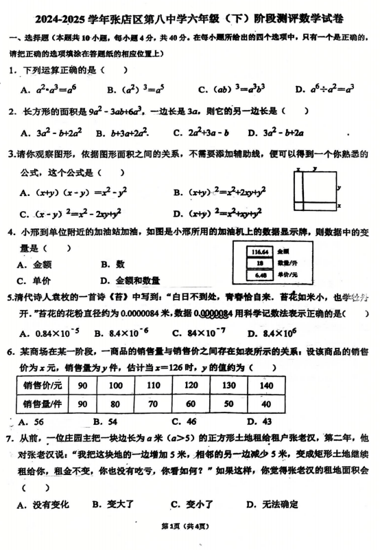 山东省+淄博市张店区第八中学2024-2025学年六年级下学期阶段测评数学试卷