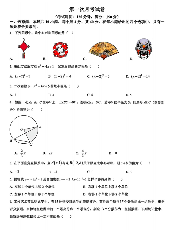 山西省晋中市寿阳县2024-2025学年上学期九年级第一次月考数学试卷