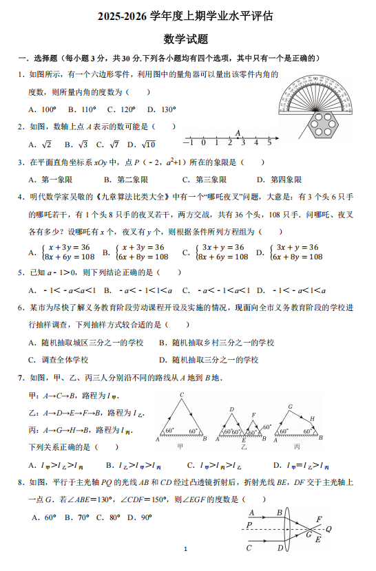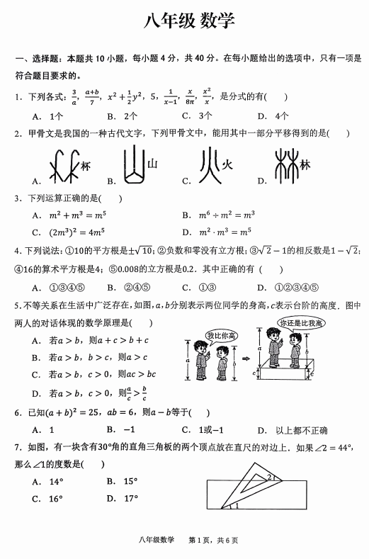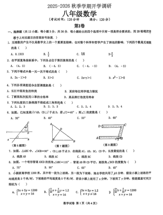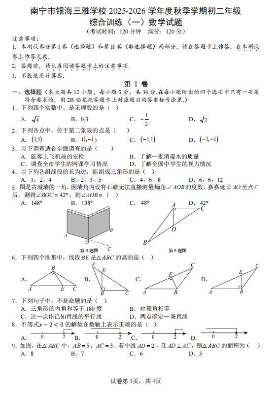 广西南宁市青秀区凤岭南路中学2025-2026学年上学期八年级开学考试数学试卷