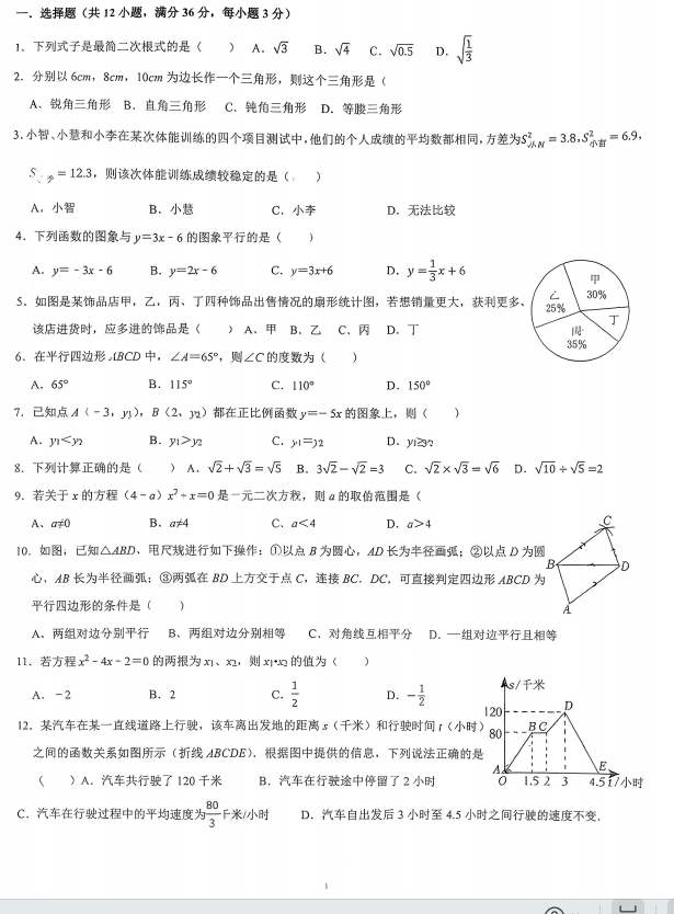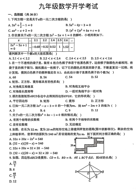 河南省驻马店市驿城区2025-2026学年九年级上学期开学考试数学试卷