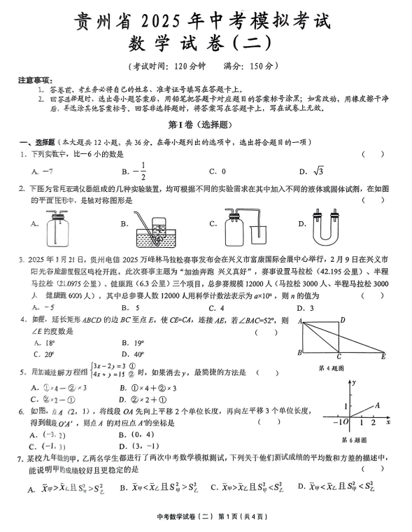 2025年贵州省黔东南州剑河县第四中学中考模拟考试数学试卷+