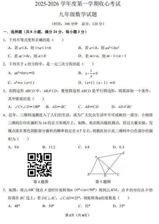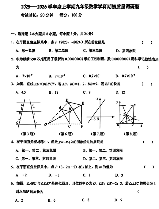 广东省广州市白云区华赋学校2025-2026学年九年级上学期开学考试数学试卷