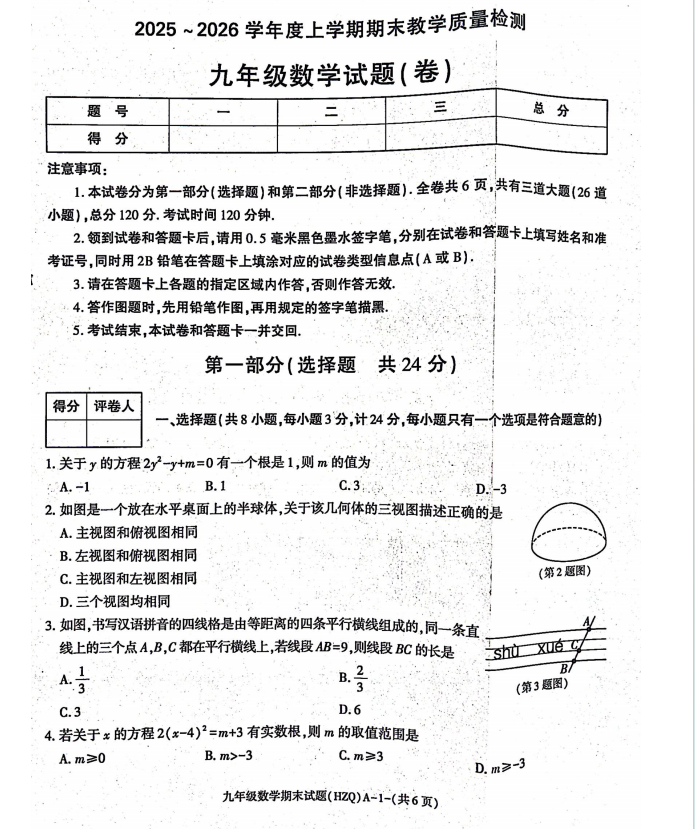 陕西省渭南市华州区2025-2026学年九年级上学期期末数学试卷