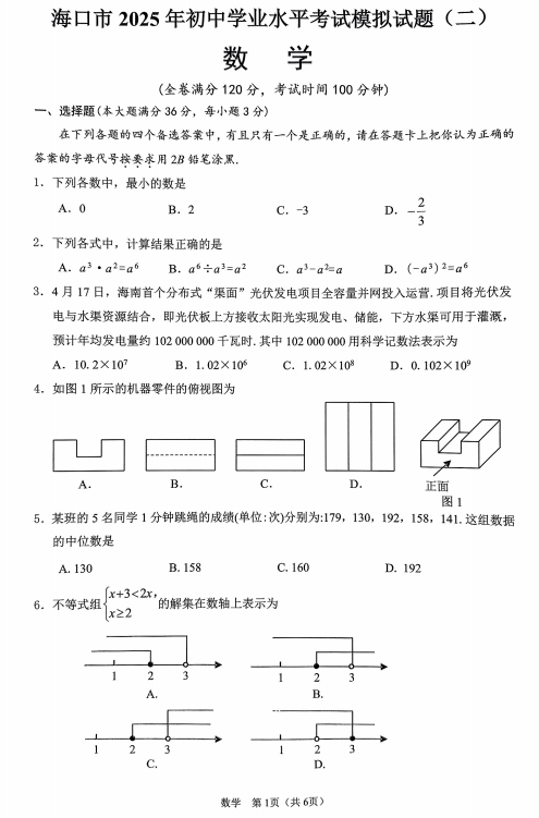 2025年海南省海口市中考二模数学试题