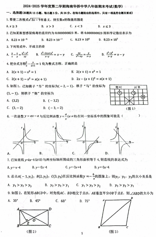 海南省海南华侨中学2024-2025学年八年级下学期期末考试数学试题