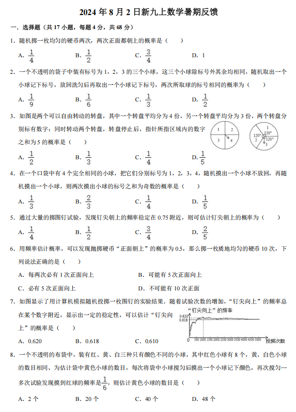 山东省济南市历下区私立济南齐鲁学校新2024-2025学年上学期九年级质量检测(一)