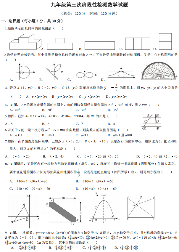 山东省东营市文苑学校2024—2025学年上学期第三次阶段性检测九年级数学试题
