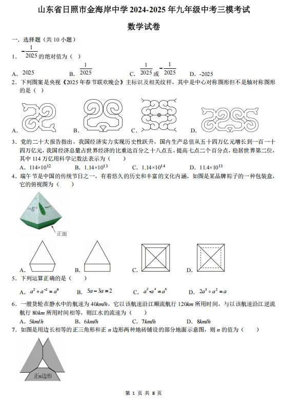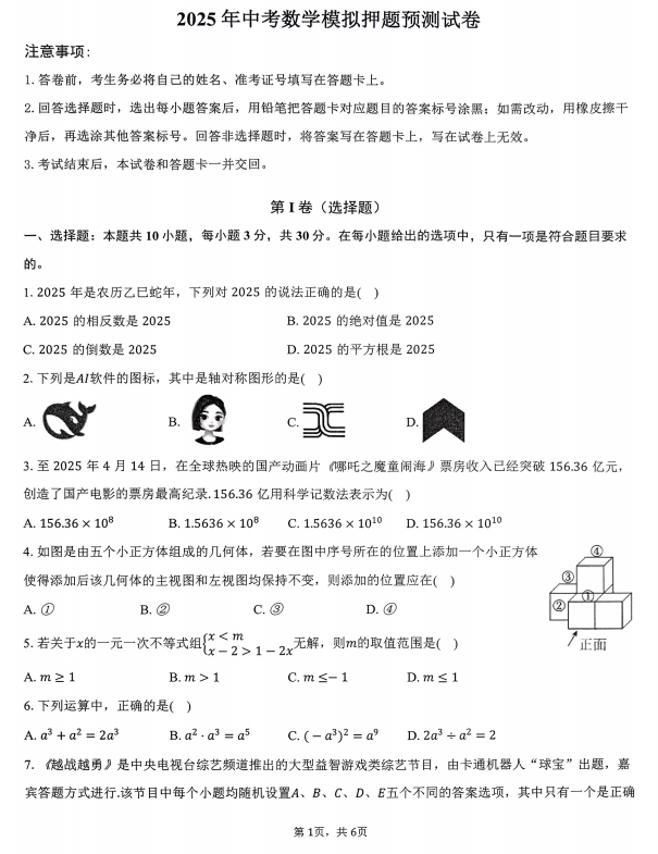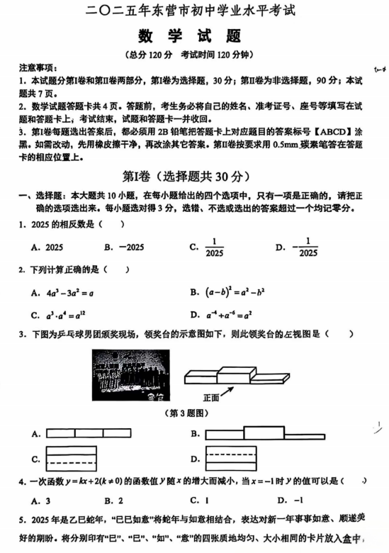 2025年山东省东营市中考模拟数学试题