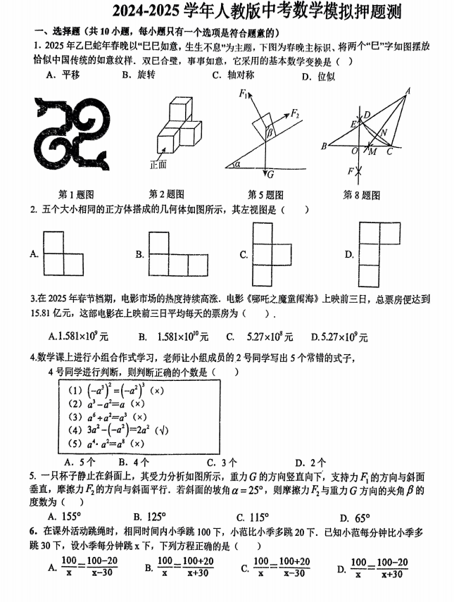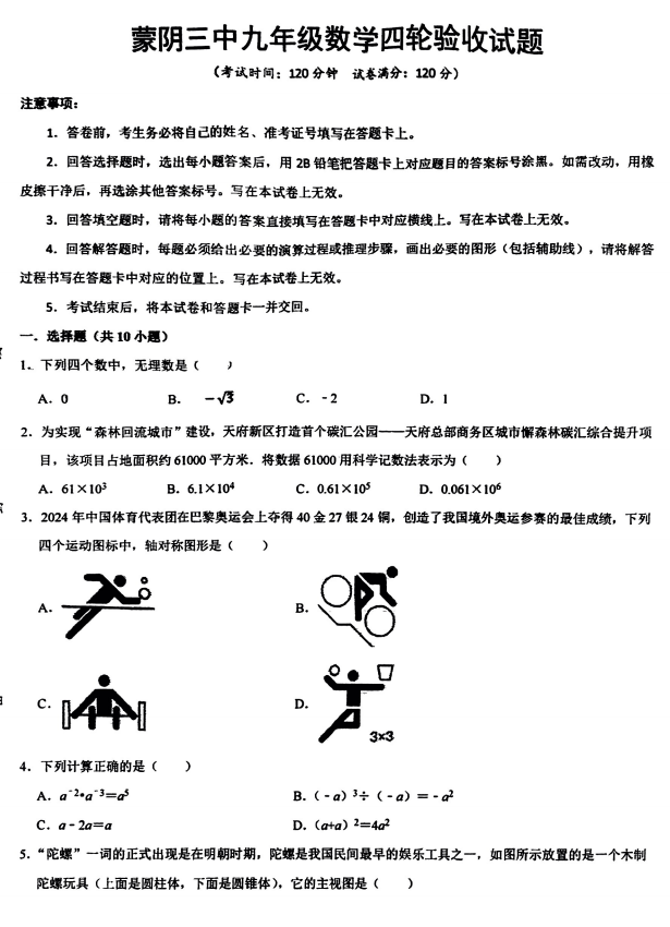 2025年山东省临沂市蒙阴县中考模拟预测数学试题