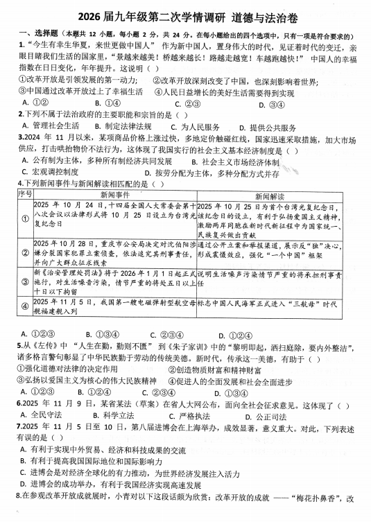江苏省苏州工业园区星湖学校2025-2026学年七年级上学期12月随堂练习历史卷